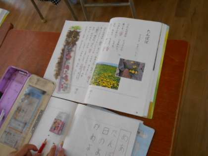 2年生が、国語科で説明文「たんぽぽ」の学習をしています。たんぽぽについて書かれた文を読み取ります。まずは、記述に沿って正しく読んでいきます。さらに、文や言葉の意味をより詳しく読み取っていきます。