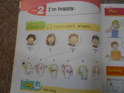 今日の5年の英語活動は、「I’m (happy)?」で、自分の気持ちや気分を表現しました。エリック先生のジェスチャーを交えた英語表現が子どもたちをより楽しくしてくれました。