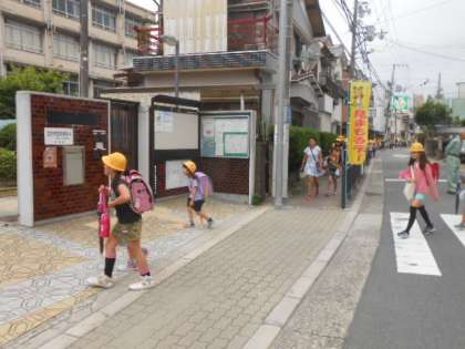 毎月7日の「見まもるデー」には、地域の老人クラブをはじめ、たくさんの見守り隊の皆さんにご協力をいただいています。お陰様で、子どもたちは、毎日、安全に登校しています。ありがとうございます。