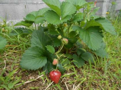 イチゴ・・・実がいくつもできました。赤く大きな実になっています。