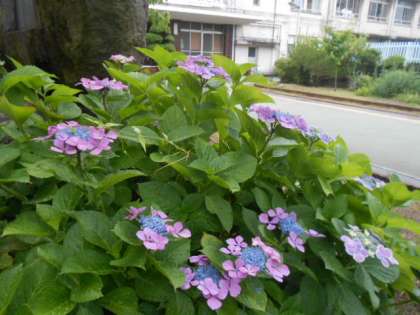 アジサイ・・・ガク(花の部分)が鮮やかな紫色に色づいてきました。