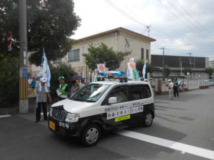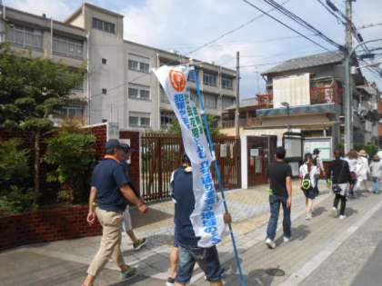 3日(日)「社会を明るくする運動」が、大隅東連合振興町会、地域社会福祉協議会の主催で行われました。8時30分に大隅東公園に集合し、9時に地域を二手に分かれて、「青少年の健全育成」「青少年の非行防止」を呼びかけるパレードで、町内を回りました。そのあと、大隅東社協会館で交流集会が開催されました。