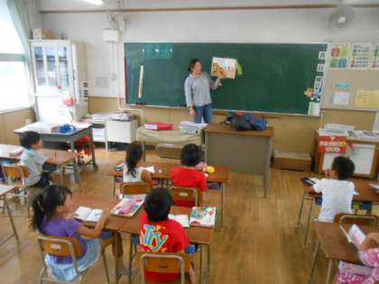 今日、朝の読み聞かせをしていただきました。学級と作品は次のとおりです。