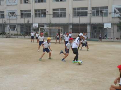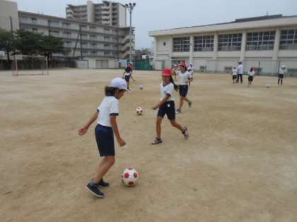 8日(金)、トップアスリート事業でセレッソ大阪より3名の講師をお招きして「サッカー教室」を開催しました。これは、トップアスリートに直接にふれあい、スポーツの素晴らしさや感動を共有できること、また夢や希望を与え、運動・スポーツに親しむ態度や習慣を身に付けることを目的としています。今回の指導は、2時間目に5年生が、3時間目に6年生が受けました。