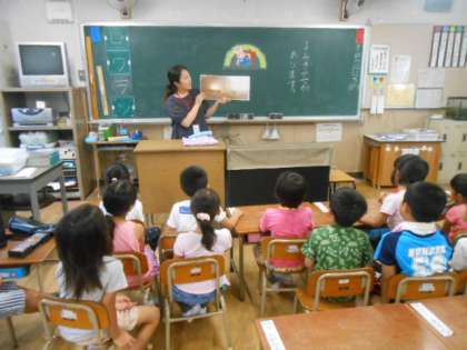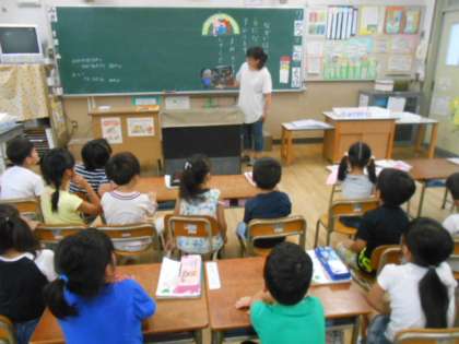 今日が、今学期の最後なので、子どもたちは、一生懸命に、お話を聞いて、絵本の読み聞かせを楽しんでいました。