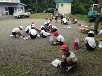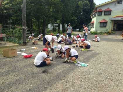 1組焼き板、2組魚つかみ。魚は、アマゴとヤマメです。この後、焼いてみんなでいただきます。