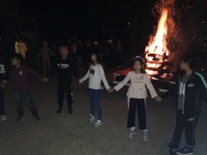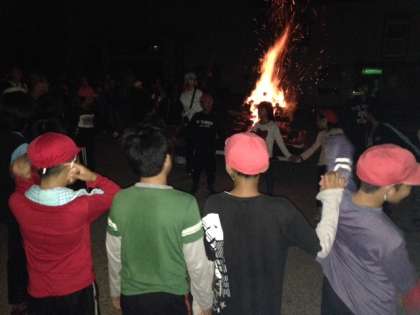 1日目の最後は、キャンプファイヤーを楽しみました。キャンプソング、ゲームで仲間づくりを深めました。そして、星空が広がり夏の星座を探し、素敵な夜を過ごしました。