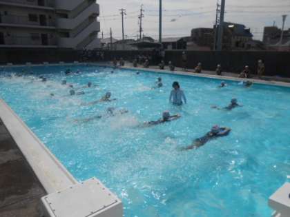 本日、2時間目4年生と3時間目3年生のプール水泳の授業参観を実施しました。