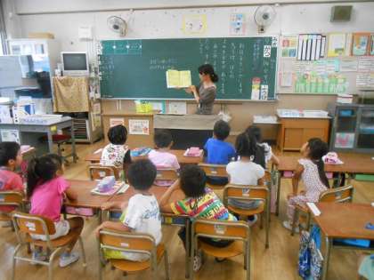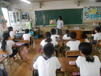 図書館ボランティアによる朝の読み聞かせを1年、3年、6年1組でしていただきました。