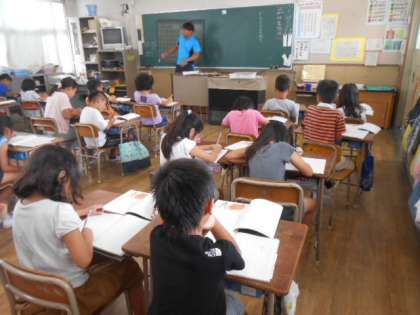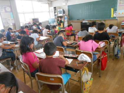 3年1組は、国語授業で物語教材「サーカスのライオン」の登場人物の気持ちを読み深めていました。2組は、運動会の団体演技「大隅東エイサー2016」で協力いただいた方へのお礼の手紙を書きました。