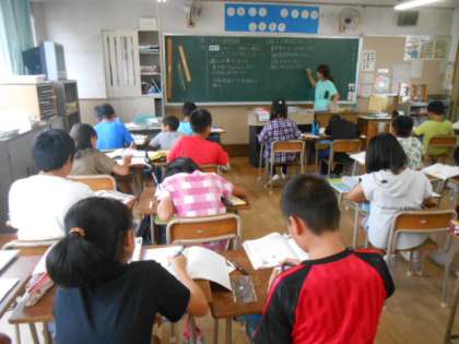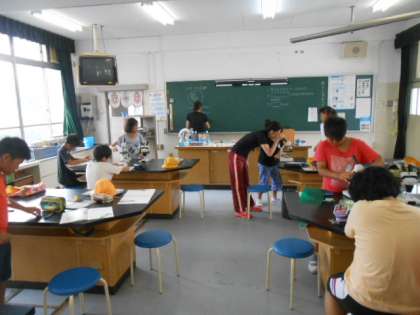 5年1組は、社会科の授業で、豊かな生活と食糧について、その課題や問題点を話し合いました。2組は、理科「花から実へ」の授業で、ヘチマの花粉を顕微鏡で観察し、分かったことを丁寧に記録してまとめていました。
