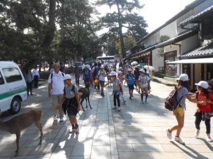 今日18日(火)5年生が、秋の遠足で奈良公園へ行きました。