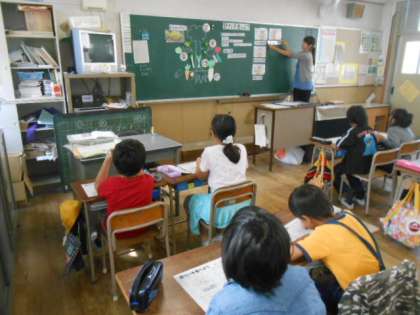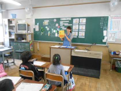 3年が、2,3時間目に栄養指導がありました。区内小学校の栄養教諭に野菜のはたらきと大切さについて、学びました。