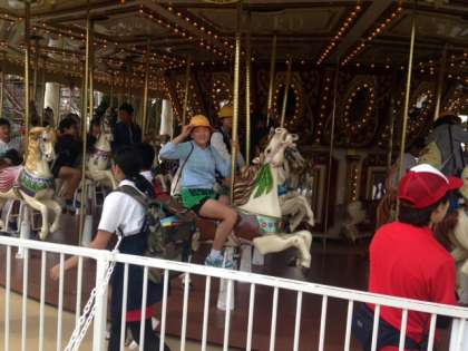 絶叫マシンを乗るグループは、30分程度の待ち時間にもめげず並んでいました。一方、ソフト系の乗り物グループもほのぼのと楽しんでいます。