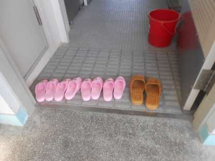 校内の全トイレにスリッパを置きました。履き替えて利用してください。