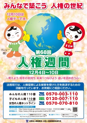 さて、先週に「いじめをなくす」話をしました。今週は、4日から10日まで「人権週間」です。10日は人権デーです。世界には、たくさんの子ども達が、苦しい生活に瀕しています。「思いやり」と「かけがいのない命」について考えてみましょう。