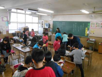 各教室では、冬休みの思い出を発表し合って、3学期の目標を書いたり、宿題の答え合わせをしたりしました。