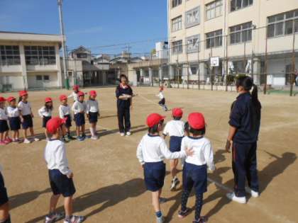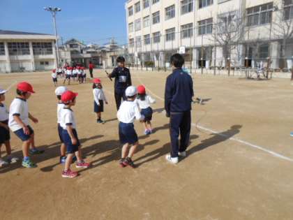 4人の中学生に1年生体育のお手伝いをしてもらいました。