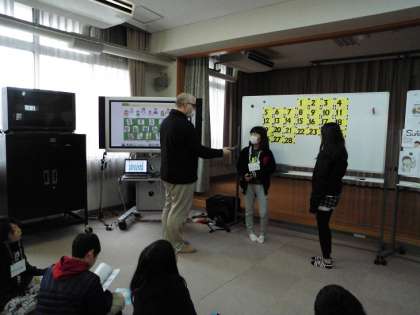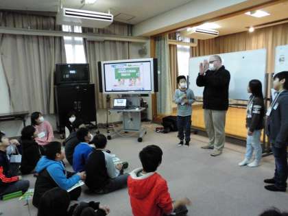 2月が誕生日の児童の紹介をしたり、いろいろな職業を英語で発音練習を、エリック先生が発音した職業を当てるゲームを楽しみました。