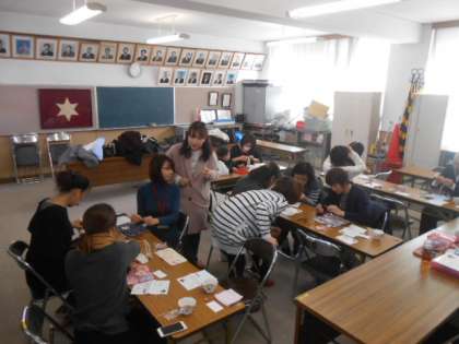 PTA成人人権委員会の活動の一貫で、社会見学に代わって本校会議室でアクセサリー作りの講座が催されました。とても素敵な作品作りとともに、PTA会員相互の交流が深まり、活動が盛り上がりました。