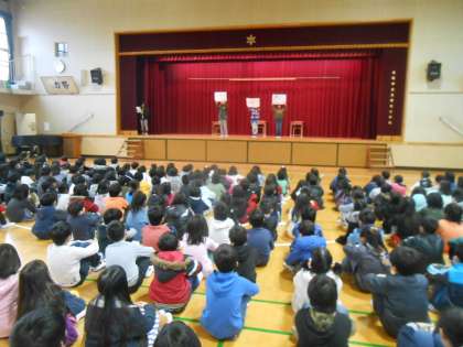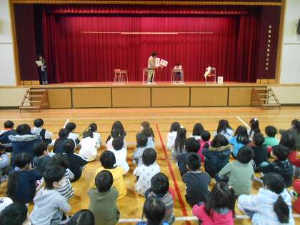 保健委員会の児童会が、健康生活の大切さについて、舞台で演じてくれました。