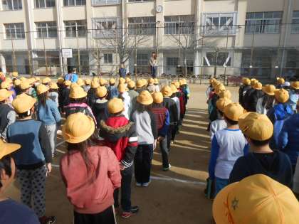 今週は、かけ足週間を実施します。15分休みに準備運動をした後、3分間の持久走をします。寒さにうちかつ体力づくりをめざして取り組みます。