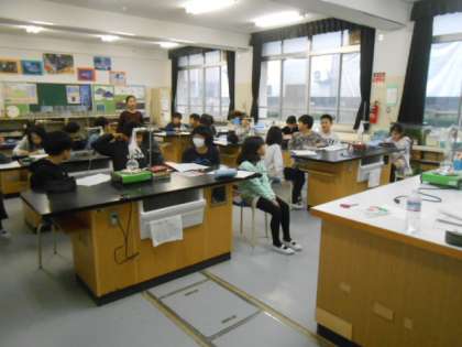 フラスコの水を熱して沸騰させた時に出る、泡の正体は何かを話し合って考察しました。