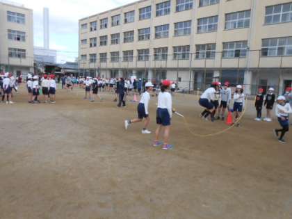 3小学校混合のチーム編成をして、自己紹介をした後、ドッジボールと大なわとびをして、互いの親睦を図りました。