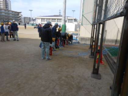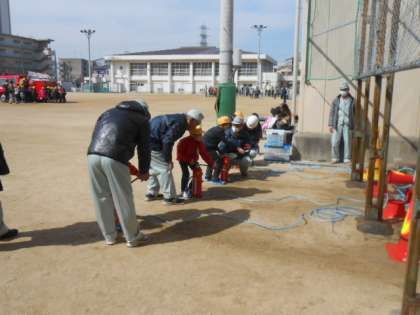 消防隊の方の話から家庭用の消火器は、噴射時間がわずか10数秒しかないことを聞き、どの子も真剣に的を当てる訓練に臨んでいました。