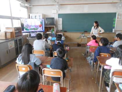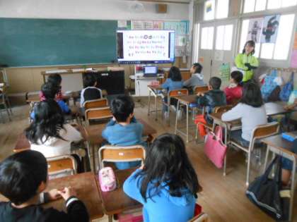 DVD英語教材を使って、15分間の英語モジュール学習の様子です。