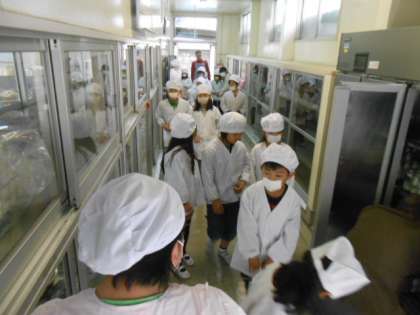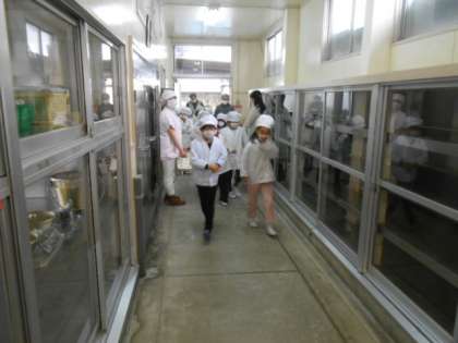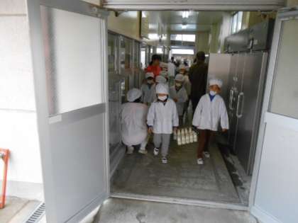 給食室の入り口では、「いただきます。」、食缶を手渡されたら「ありがとうございます。」としっかりとあいさつができていました。礼儀正しい態度が育ってきました。