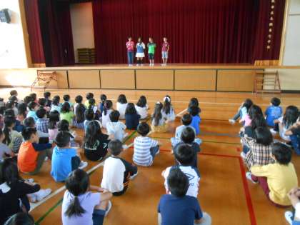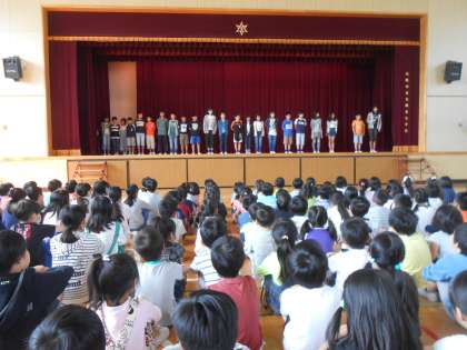 今朝の児童集会では、委員会活動の代表と児童会学級代表の紹介がありました。短く一言ですが、舞台でマイクを手に、一人一人が堂々と語る姿は、とても頼もしさを感じました。