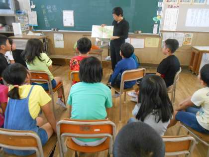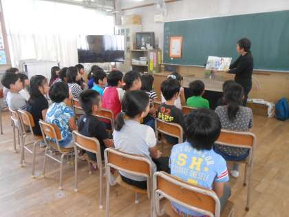 15日(月)2,3時間目に東淀川区図書館の協力による4年生のブックトークをしていただきました。「くらしと自然—生き物たちとの助け合い」をテーマに、4年生の児童に以下の作品を紹介していただきました。