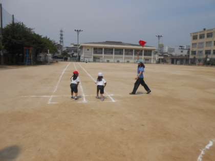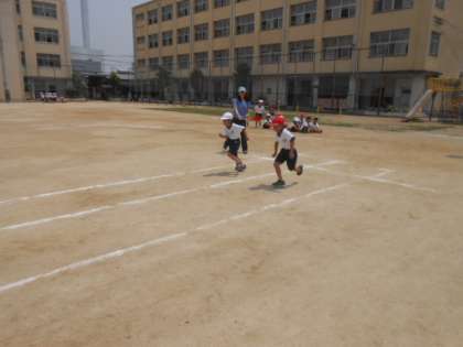 50m走は、どの子も腕をしっかり振って、快走していました。