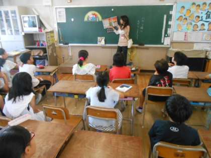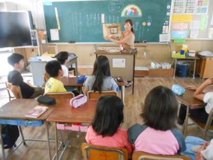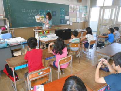 子どもたちは、図書館ボランティアさんの楽しい語りと併せて読み聞かせを楽しんでいます。今日は、放課後図書室開放もあります。たくさん本を読みにきてください。