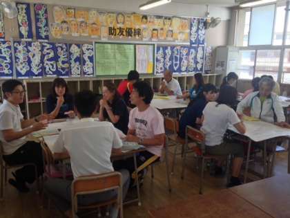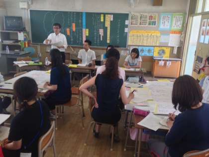 5時間目、4年の国語科授業を参観し、放課後、教室で授業についてグループに分かれて協議しました。大阪市教育センター教育指導員の石橋先生に指導助言を受けました。