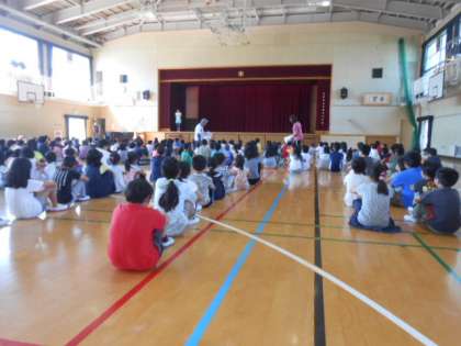 今朝の児童集会は、たてわり班によるゲーム集会です。