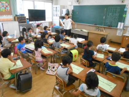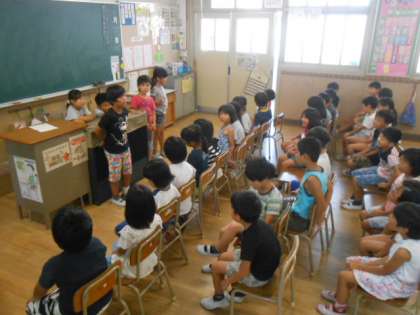1年生は、初めての通知票をわくわくどきどきして受け取ったことでしょう。2年生は、友だちの前で1学期に頑張ったところを発表して互いに励まし合いました。