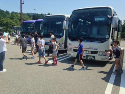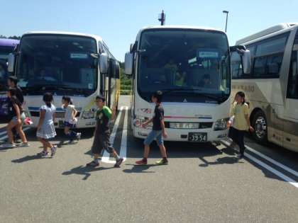 2回目のトイレ休憩を道の駅まほろばは、大阪市の小学校のバスでいっばいです。10:50出発。バス酔いする子もいないでみんな元気です。