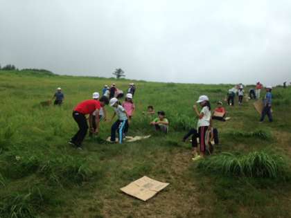高原散策では、昆虫を捕まえたり、草すべりをしたりして最後の活動を楽しみました。