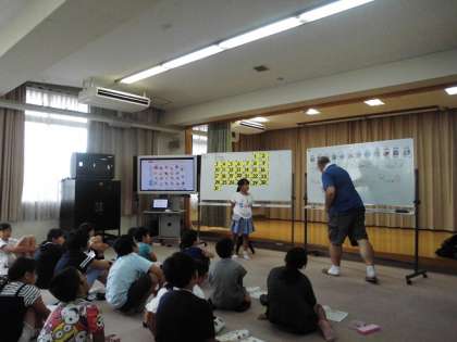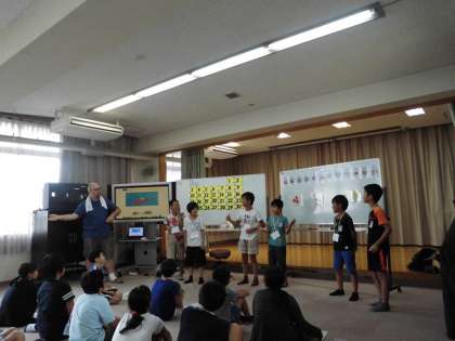 5年生は、曜日の歌を英語で歌った後、ジェスチャーをつけて、英語でものの好ききらいを言うゲームをして英語を楽しみました。