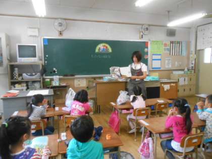 水曜日に、朝の読み聞かせがあります。今回は、1年と5年です。