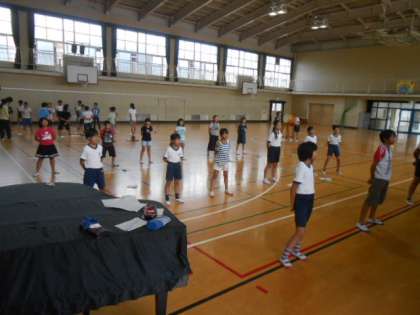 運動会の応援団が、4〜6年生の代表で編成されました。さっそく体育館で練習を始めていました。運動会の本番を盛り上げるために赤白それぞれに演じ方を工夫しながら励んでいきます。