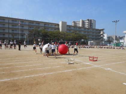 1日(日)の運動会に向けて、全体練習が始まりました。今日は、入場行進、開会式、全校競技(大玉ころがし)をしました。全体練習の初回ですが、号令に合わせて行進や整列に一生懸命取組んでいました。また、開会式の役割分担に当たっている高学年担当児童は、全校児童が注目する中、教わったことを真剣な表情で臨んでいました。