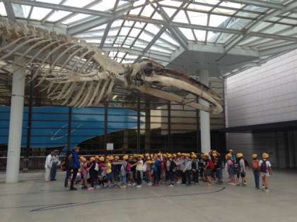 自然史博物館を見学しました。子ども達は、クジラやゾウの巨大な骨格標本や様々な生物の標本に興味深く見ていました。