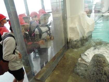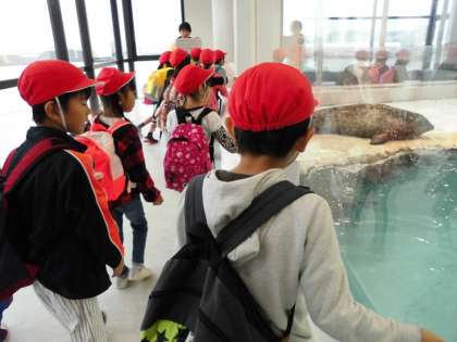 雨模様でしたが、1,2年生が秋の遠足で、海遊館へ行きました。地下鉄瑞光4丁目駅を出発し、緑橋で乗り換えて大阪港駅まで約1時間、電車を乗り継いで行きます。