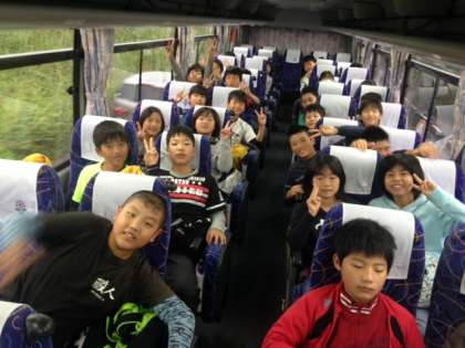 6年生が58人全員揃って修学旅行で鳥羽方面に7:45一路バスで出発しました。