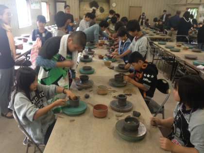 陶芸体験を初めてする子どもたちが多く、土の手触りや形作りを楽しみ、それぞれ個性ある器などの作品を熱心に仕上げました。