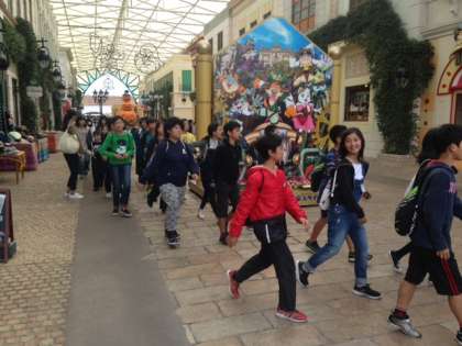 スペイン村に到着、記念写真を撮影して、お目当てのアトラクションに班活動で楽しみます。