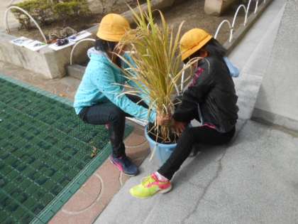 5年生が、社会科の農業に関する学習と関係して、総合的な学習の時間に「米作り」に取り組んできました。今日の授業では、初夏から育ててきた稲穂の刈り取り作業をしました。今後、脱穀、もみすりと精米の手順を経て白米ができ上がります。